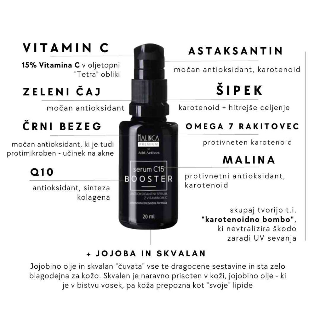 Od začetka junija letos sem testirala Malinca x Add Actives Serum C15 Booster. Moja koža: suha, pore so zelo vidne, po nosu pogosto zamašene.